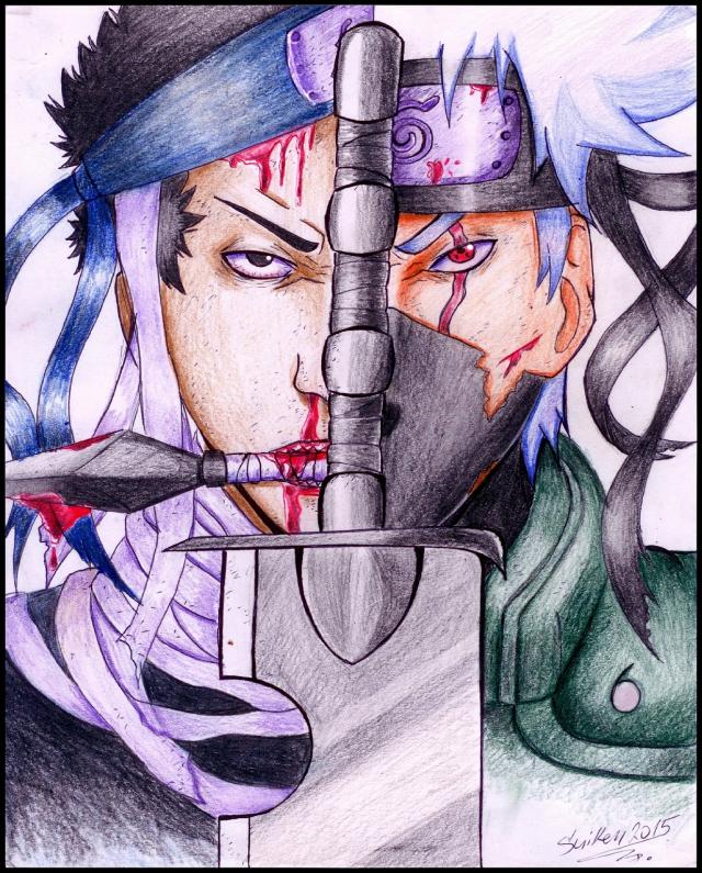 hm...no...ešte k obrázku...väčšina je kreslená bez predlohy...no musel som si niekoľko krát pozrieť ako ten Zabuza vyzerá..proste som ho predtým nikdy nekreslil..no Kakashiho už mám natrénovaného aspoň trochu